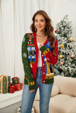 Nutcracker Contrast V-Neck Long Sleeve Cardigan